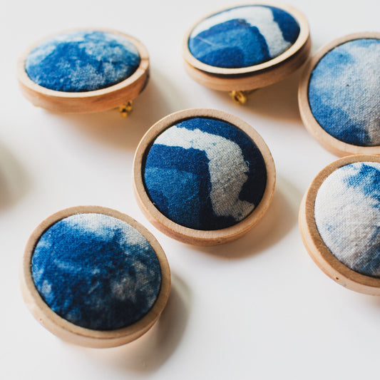 Cyanotype Wooden Brooch 1 Pcs