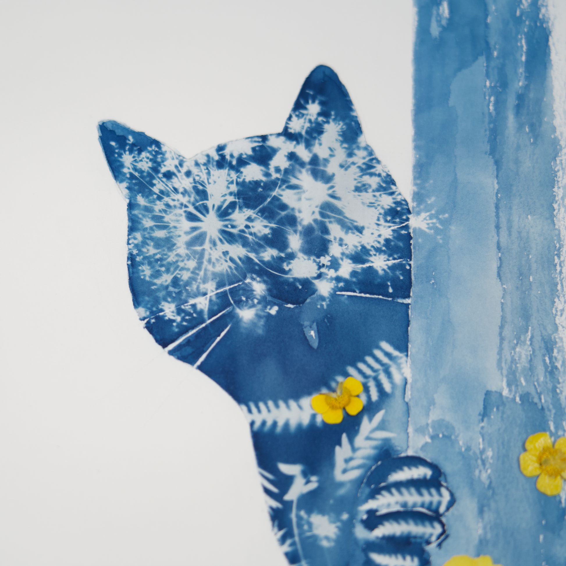 Flowers are woven into these cyanotypes as a tribute to the memories of him wandering my workspace, pausing to sniff the blooms as I created art. Through the blue of cyanotype and the softness of pressed flowers, Companions celebrates love, stillness, and the beauty found in simple moments shared with those who walk beside us.