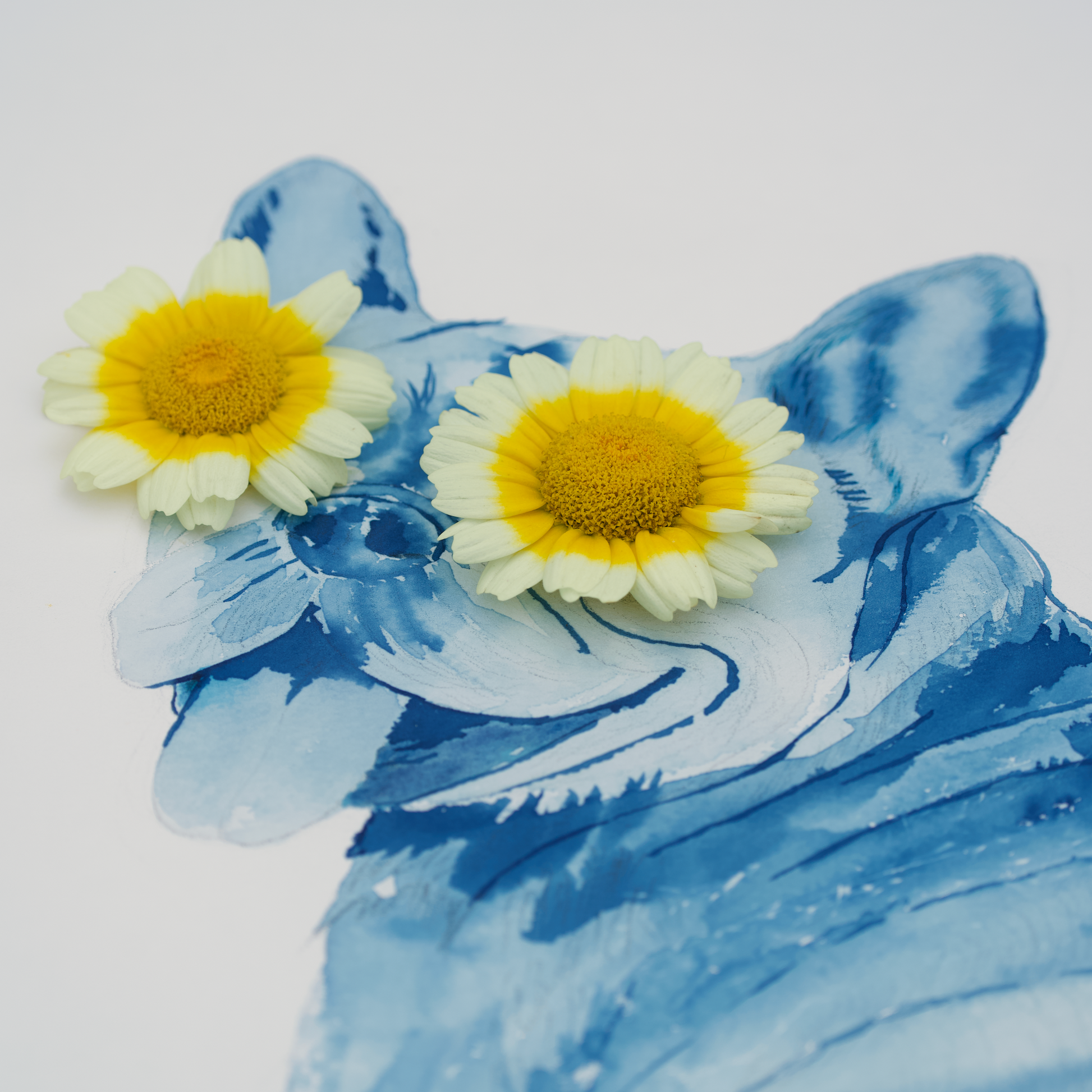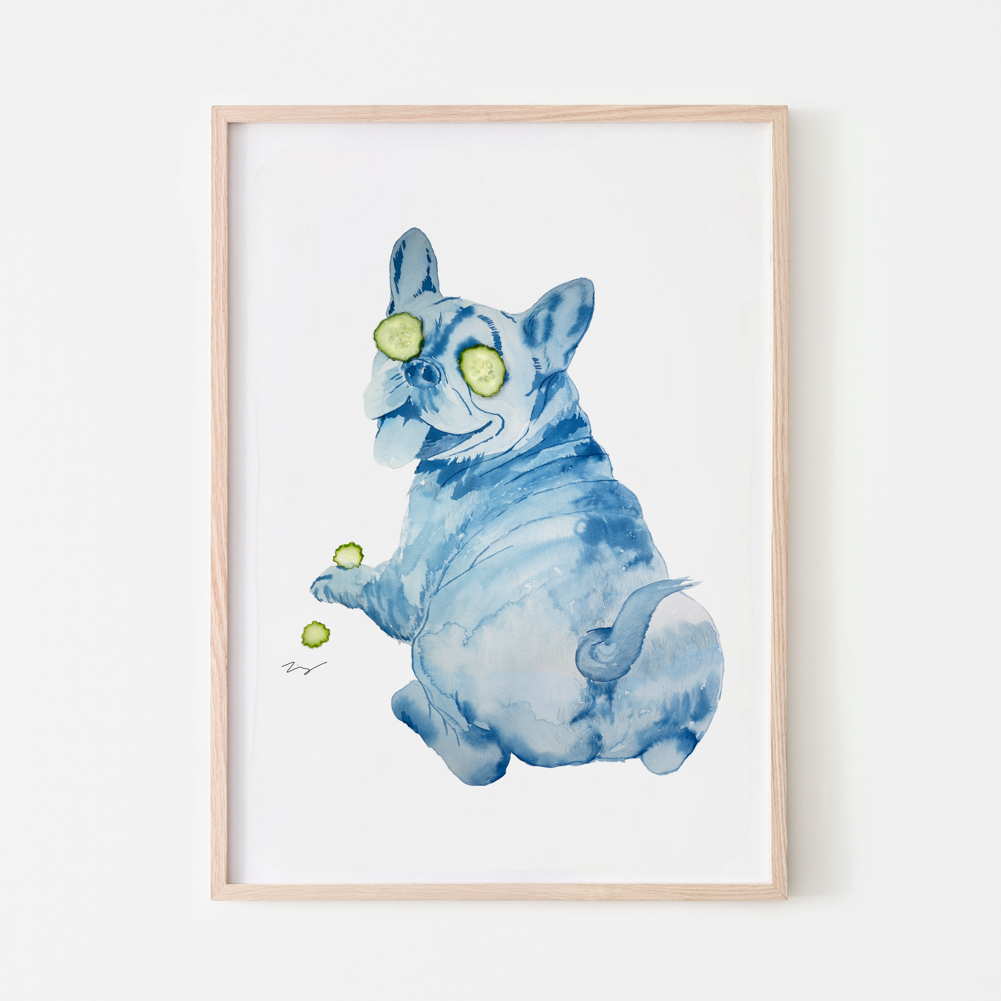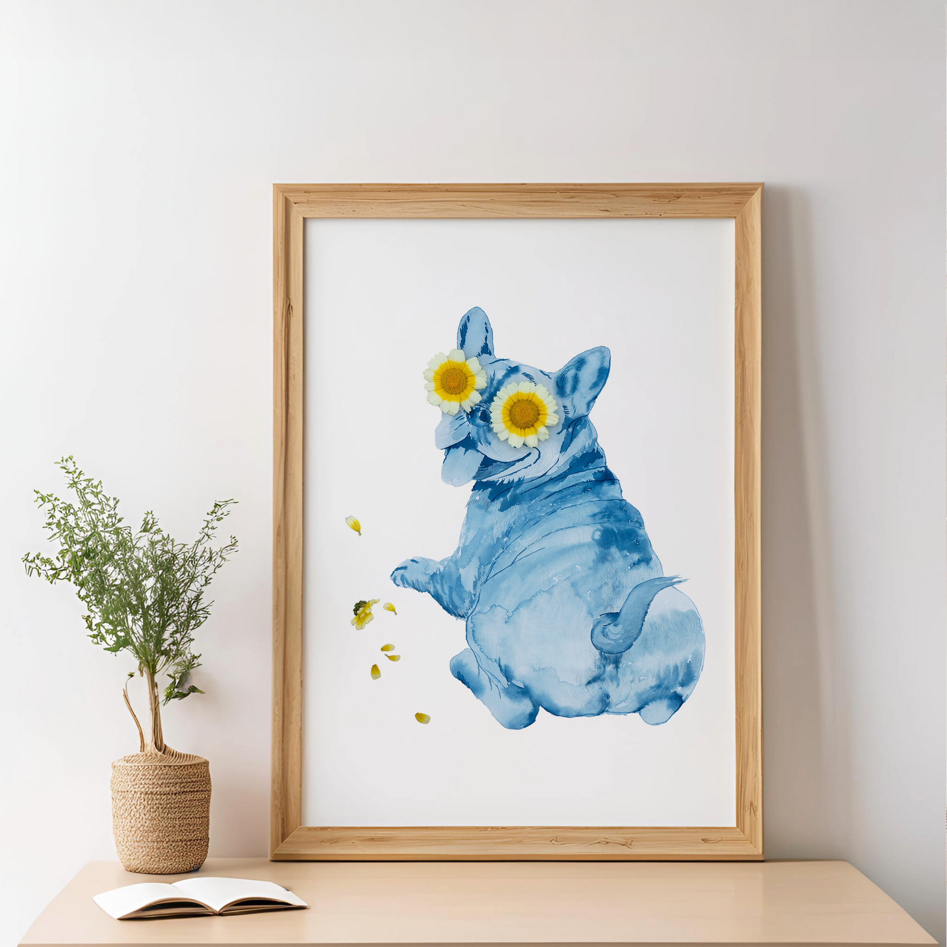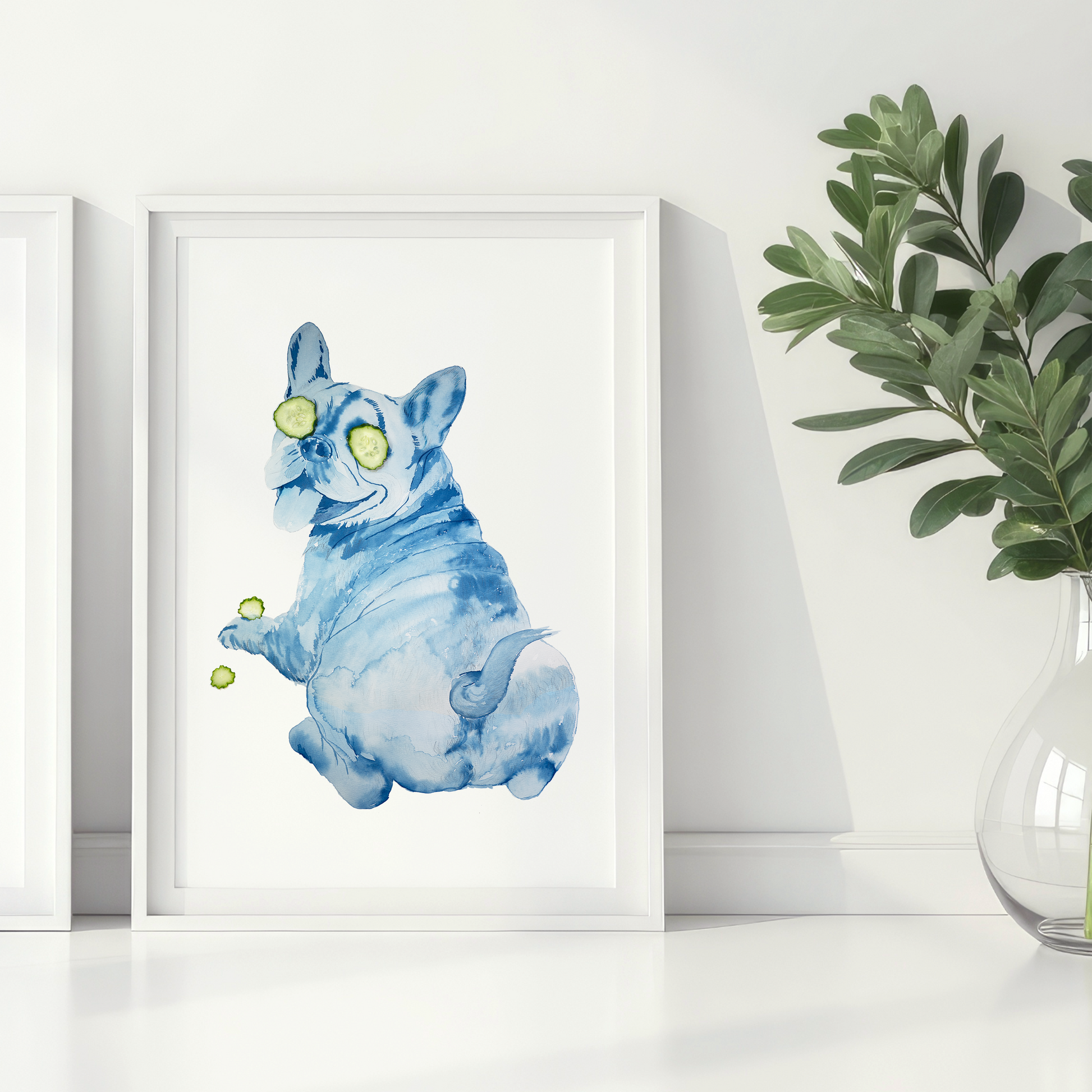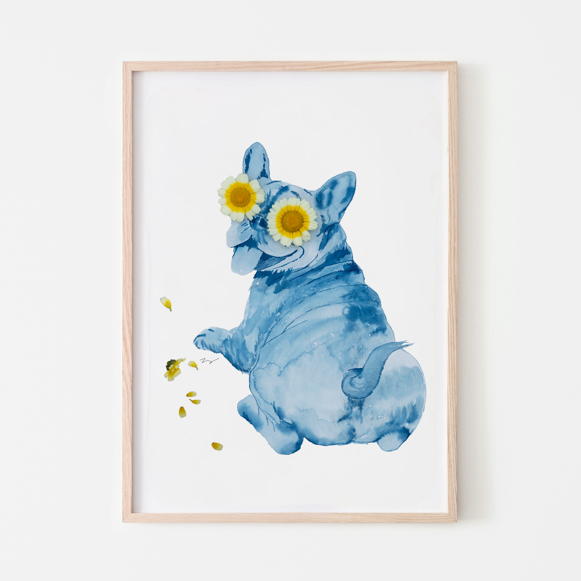Playful yet thoughtful, this cyanotype portrait captures a French Bulldog enjoying a quiet moment. Beneath the humor lies a gentle invitation to pause.