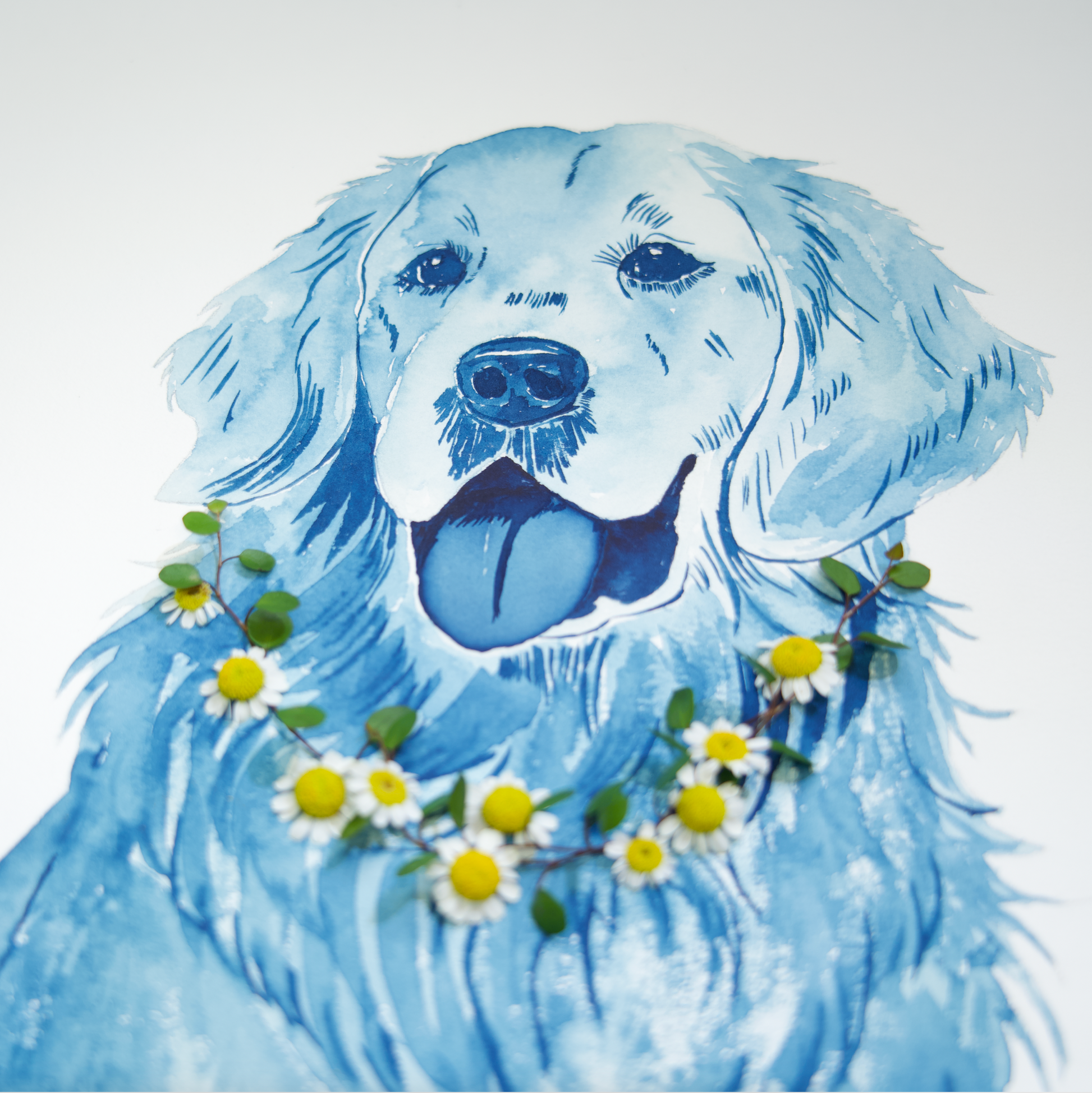 Though created in the deep blue tones of cyanotype, this Golden Retriever is golden where it matters most — at heart.